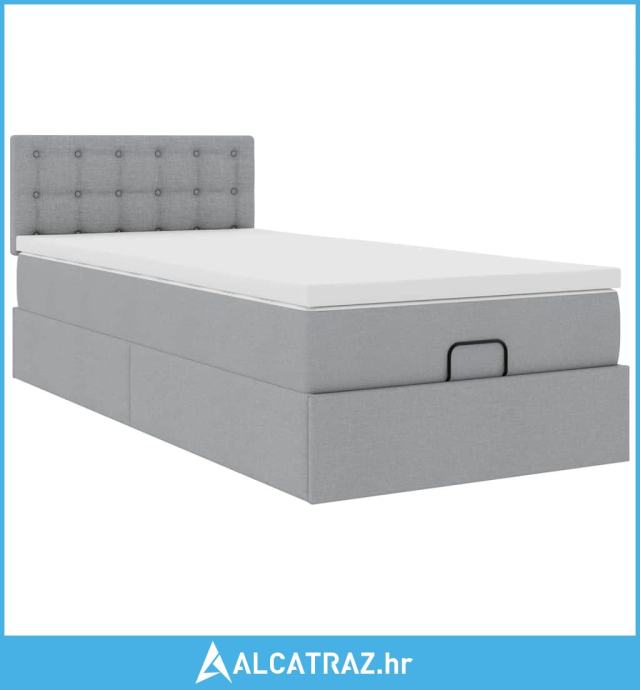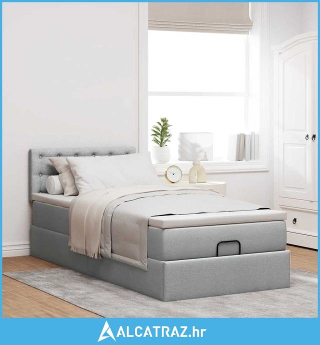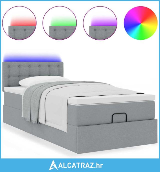 Otomanski krevet s madracem i LED svijetlosiva 80x200cm tkanina - NOVO