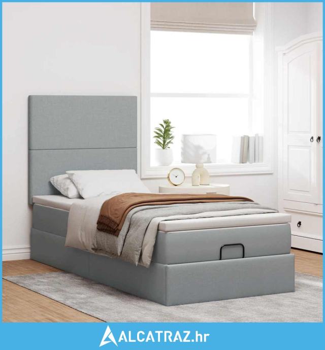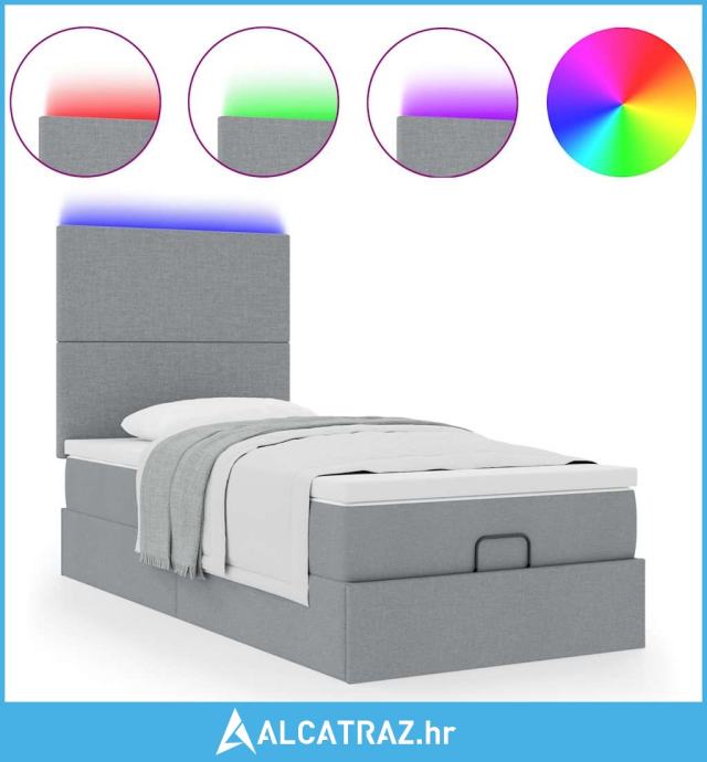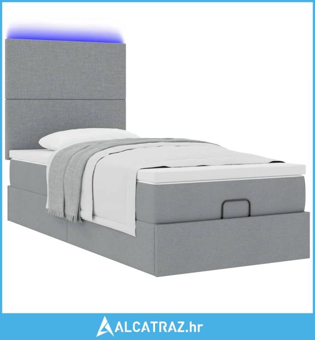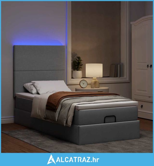 Otomanski krevet s madracem i LED svijetlosiva 80x200cm tkanina - NOVO