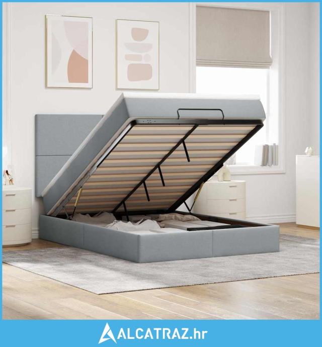 Otomanski krevet s madracem&LED svijetlosivi 140x190 cm tkanine - NOVO