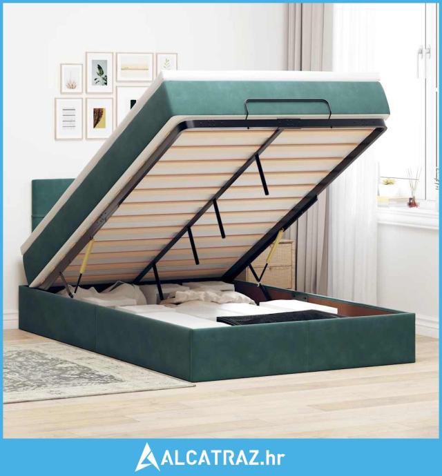 Otomanski krevet s madracem&LED tamnozeleni 120x200cm baršun - NOVO