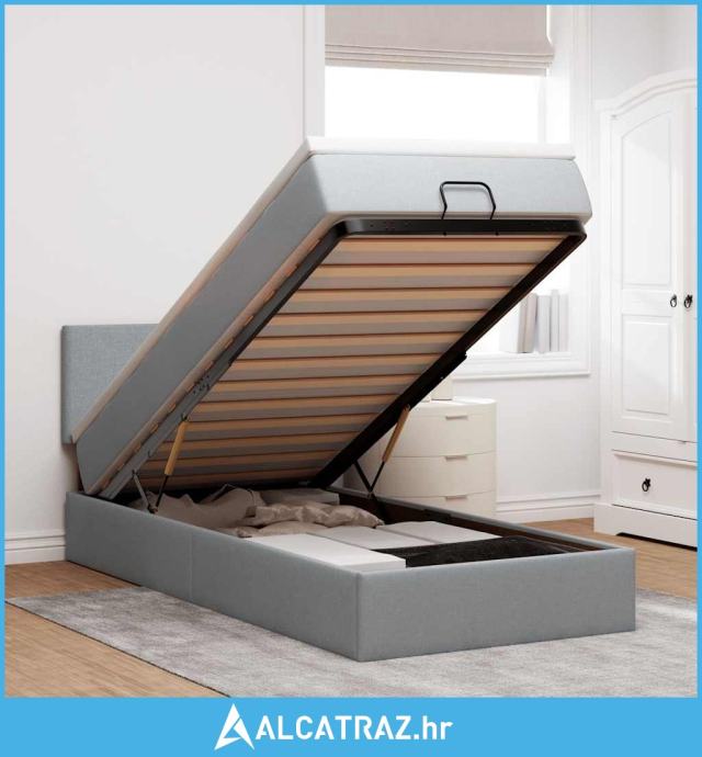 Otomanski krevet s madracem svijetlosivi 100x200 cm tkanine - NOVO