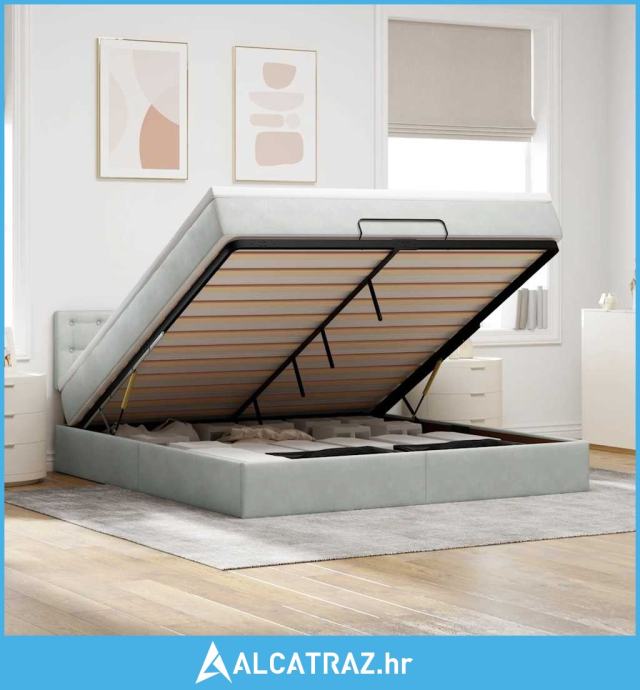 Otomanski krevet s madracem svijetlosivi 180x200 cm baršunasti - NOVO