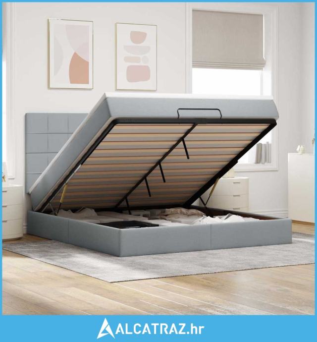 Otomanski krevet s madracem svijetlosivi 180x200cm od tkanine - NOVO