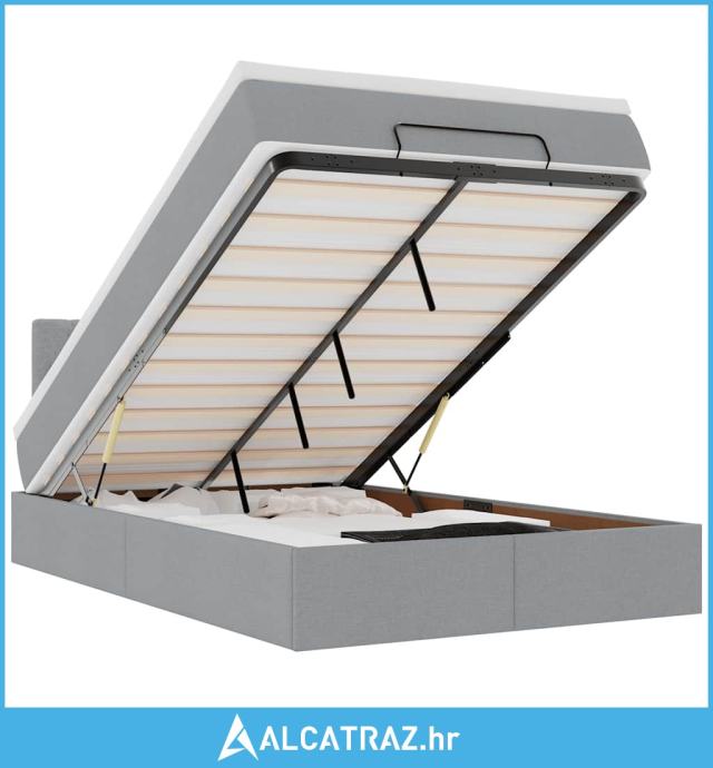 - Dovoljno prostora za pohranu ispod kreveta: zahvaljujući hidrauličnom mehanizmu za podizanje, okvir kreveta nudi dovoljno prostora za pohranu ispod kreveta, povećavajući prostor bez zauzimanja dodatne površine poda. Sa samo jednostavnim povlačenjem ručke, letvica se glatko podiže, omogućujući vam da svoje predmete izvadite brzo i bez napora.