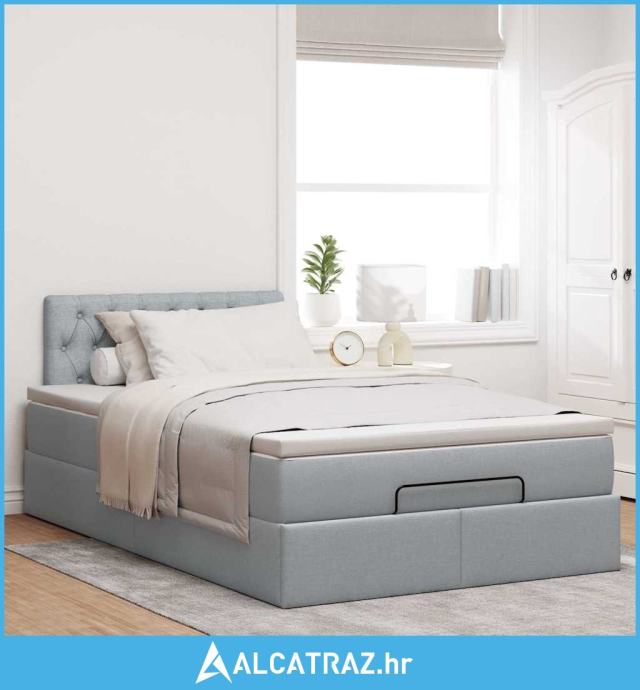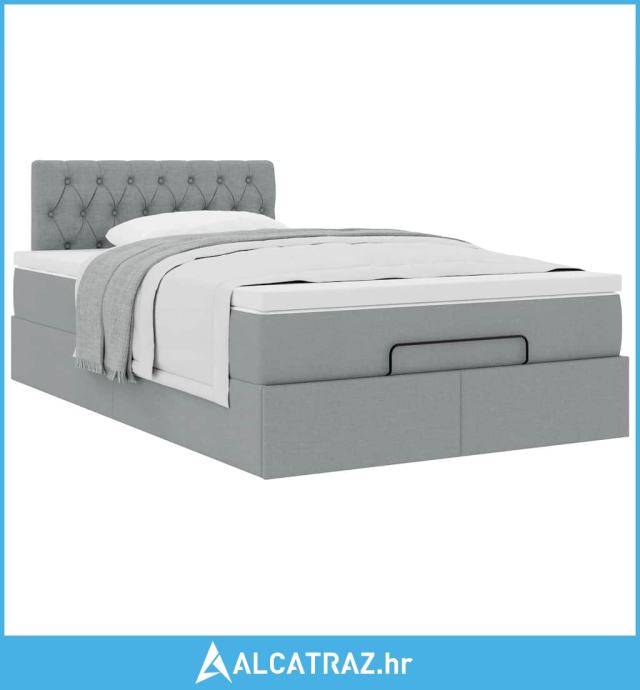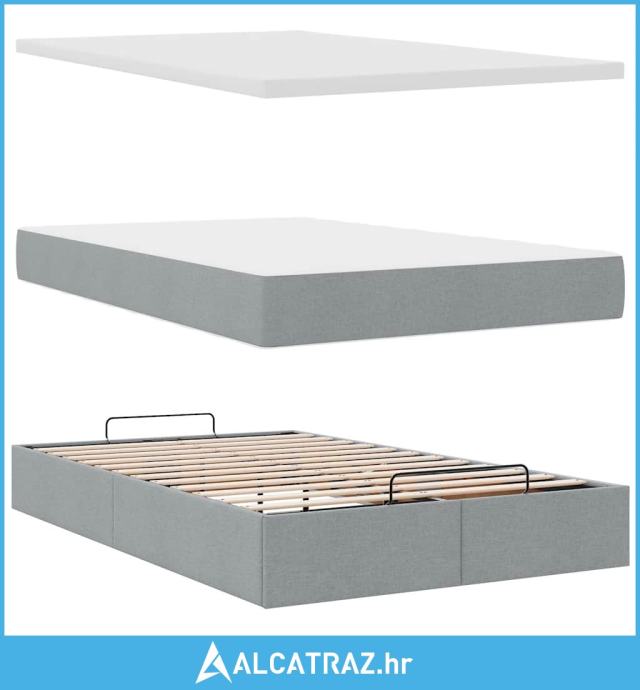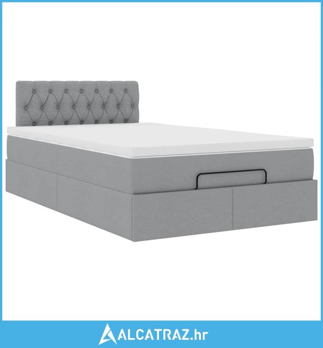 Otomanski krevet s madracem svjetlosivi 120x190 cm tkanine - NOVO