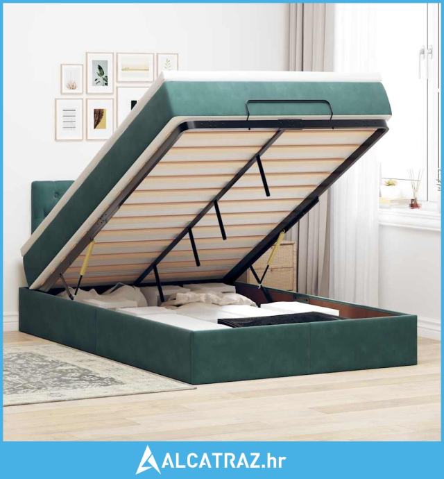 Otomanski krevet s madracem tamnozeleni 120x200 cm baršunasti - NOVO