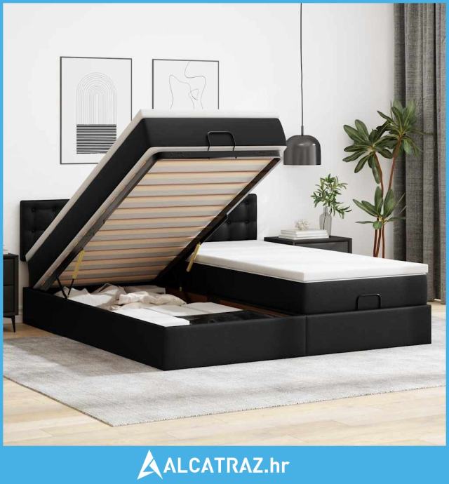 Otomanski krevet s madracima i LED crni 160x200cm umjetna koža - NOVO