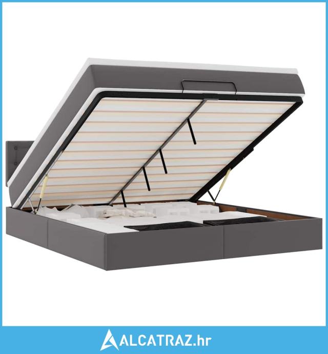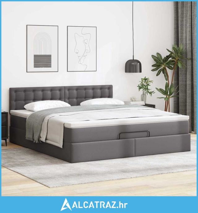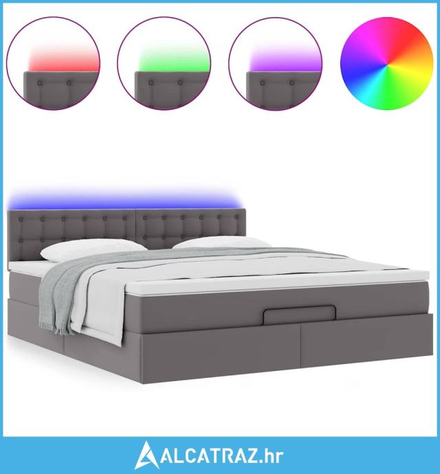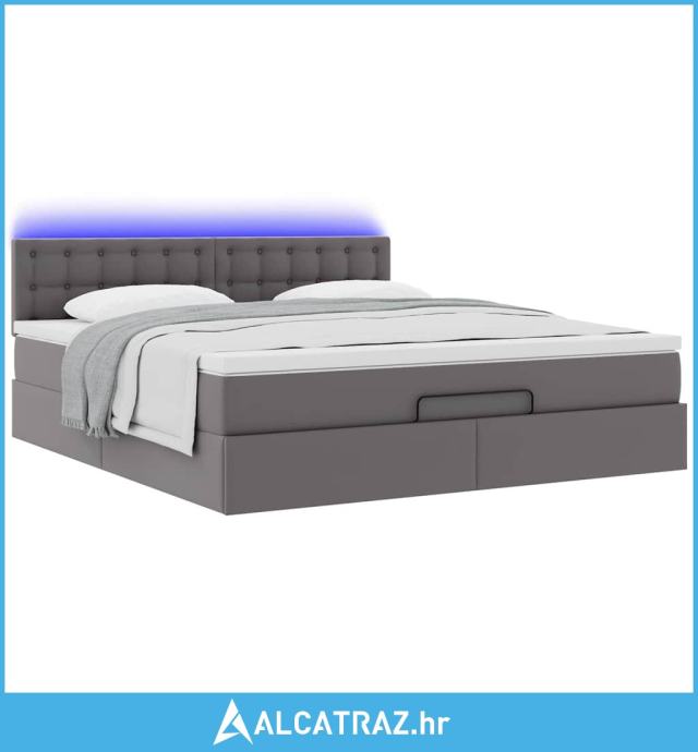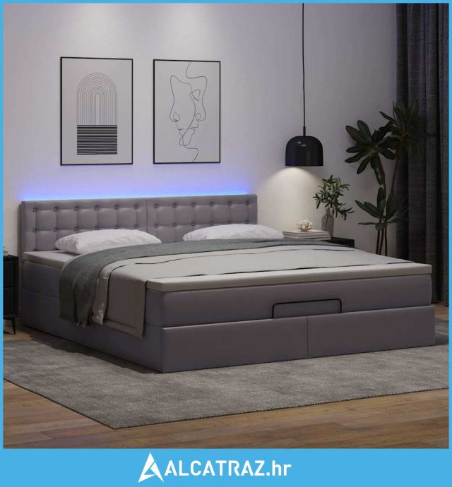 Otomanski krevet s madracima i LED sivi 160x200cm umjetna koža - NOVO