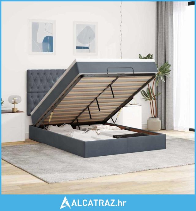 Otomanski krevet s madracima&LED tamnosivi 140x200cm baršunasti - NOVO