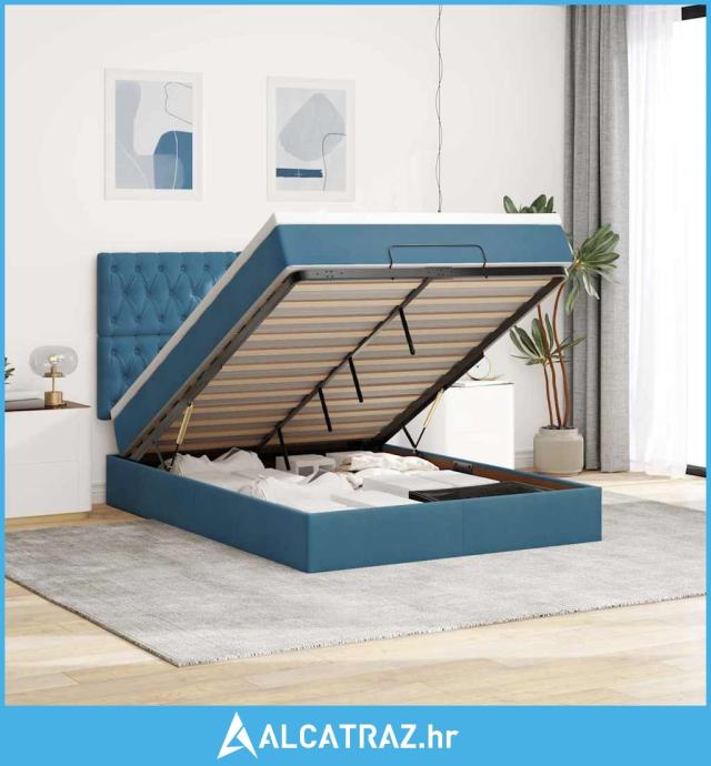 Otomanski krevet s madracima tamnoplavi 140x190 cm baršunasti - NOVO