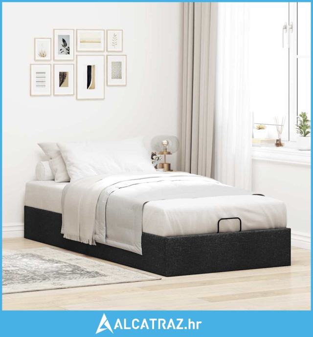 Otomanski okvir kreveta bez madraca crni 100x200 cm od tkanine - NOVO