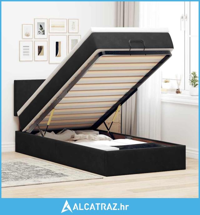 Otomanski okvir kreveta s madraca crni 80x200cm baršunasti - NOVO
