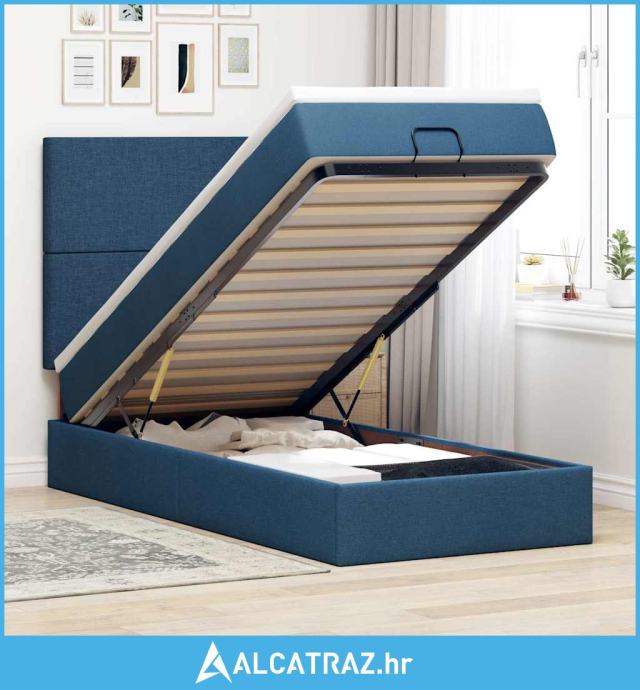 Otomanski okvir kreveta s madraca plavi 90x190cm od tkanine - NOVO