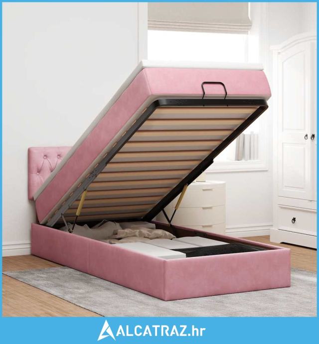 Otomanski okvir kreveta s madraca ružičasti 90x200cm baršunasti - NOVO