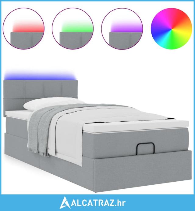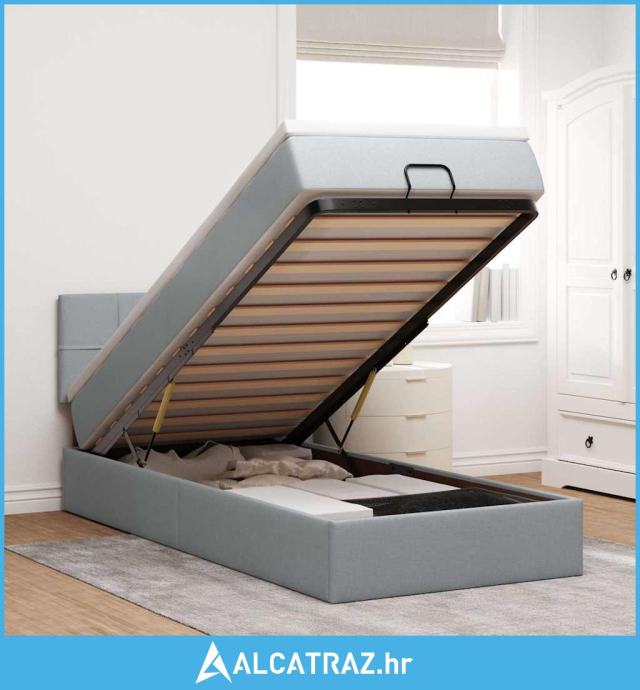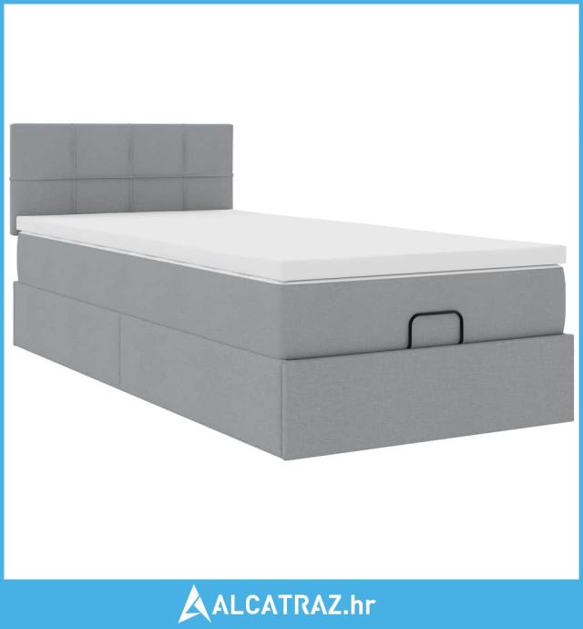 Otomanski okvir kreveta s madraca svijetlosivi 90x190cm tkanine - NOVO