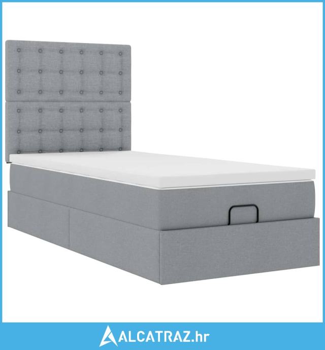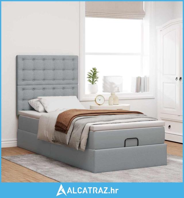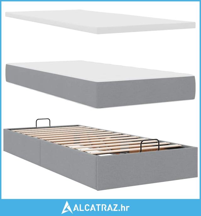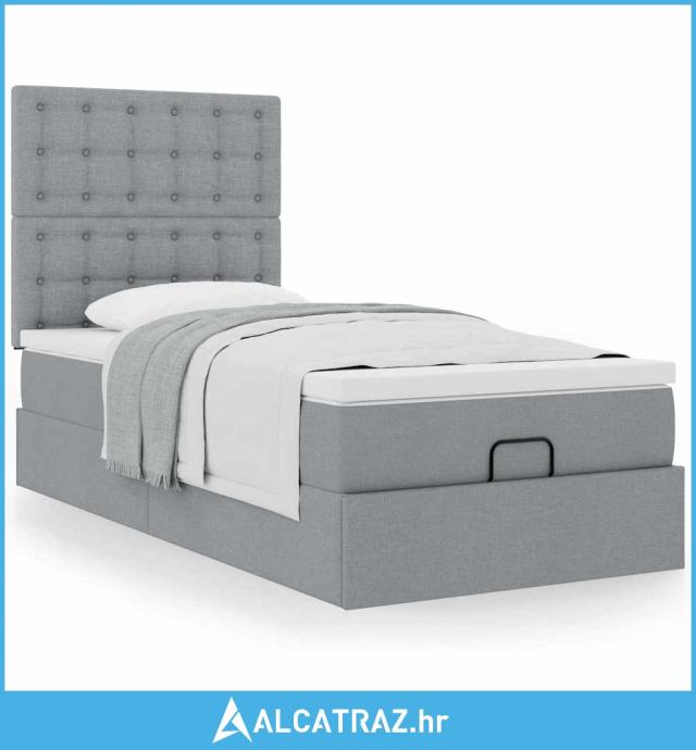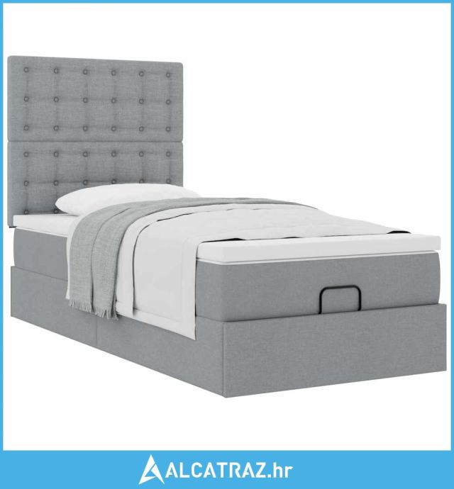 Otomanski okvir kreveta s madraca svijetlosivi 90x190cm tkanine - NOVO