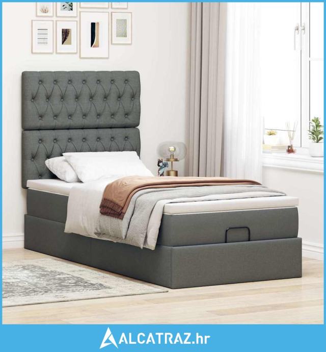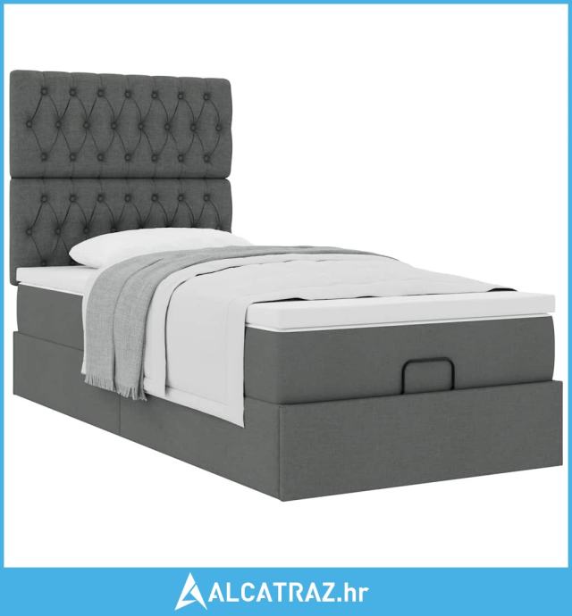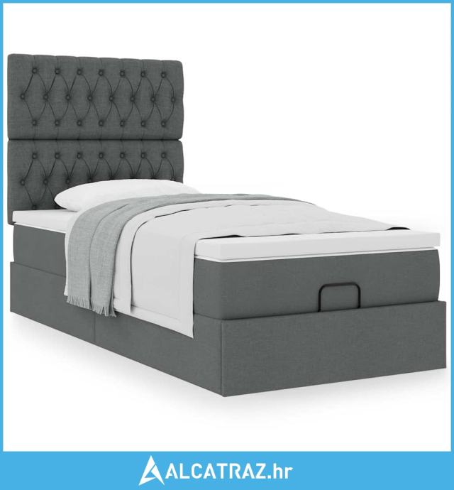 Otomanski okvir kreveta s madraca tamnosivi 80x200cm od tkanine - NOVO