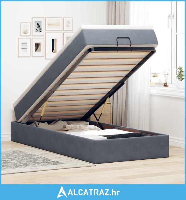 Otomanski okvir kreveta s madraca tamnosivi 90x190cm baršunasti - NOVO