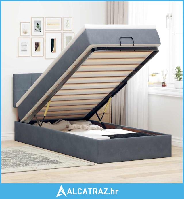 Otomanski okvir kreveta s madraca tamnosivi 90x200cm baršunasti - NOVO