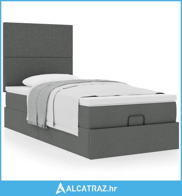 Otomanski okvir kreveta s madraca tamnosivi 90x200cm od tkanine - NOVO