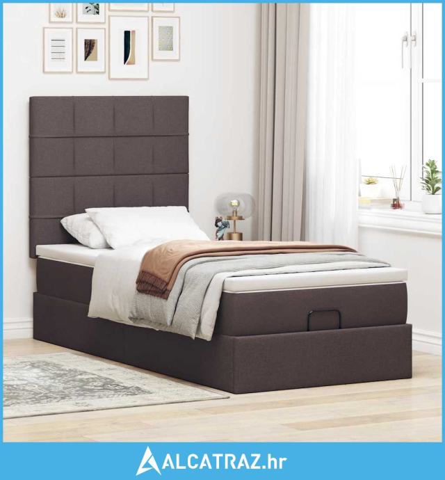 Otomanski okvir kreveta s madraca tamnosmeđi 100x200cm tkanine - NOVO