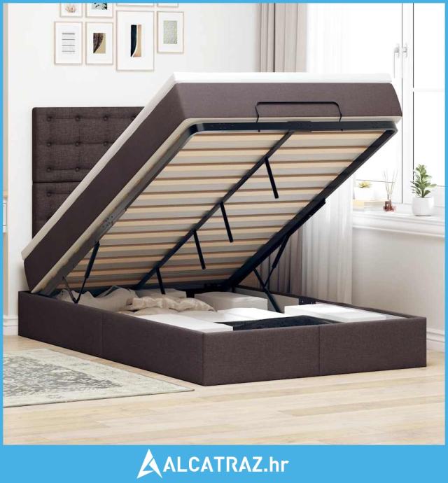 Otomanski okvir kreveta s madraca tamnosmeđi 120x200cm tkanine - NOVO