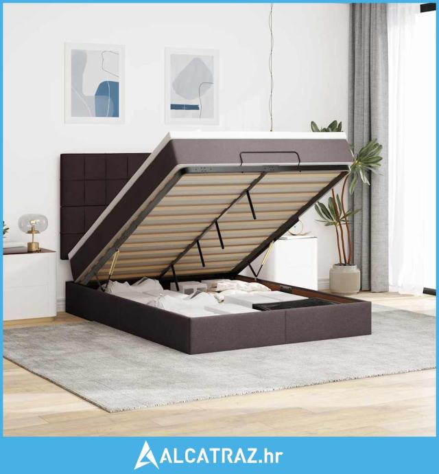 Otomanski okvir kreveta s madraca tamnosmeđi 140x200cm tkanine - NOVO