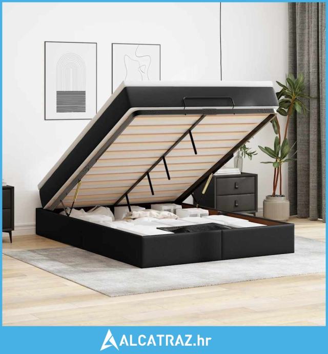 Otomanski okvir kreveta s madracem crni 140x200cm umjetna koža - NOVO