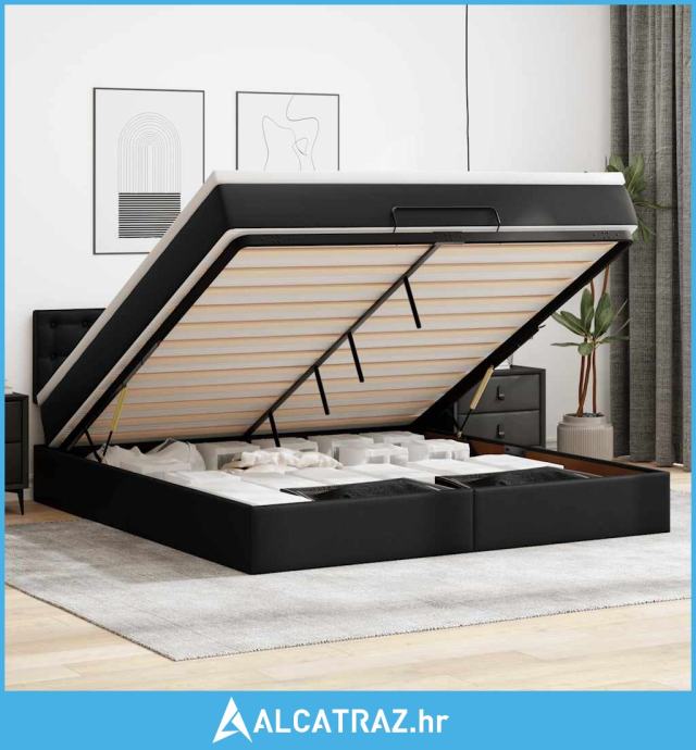 Otomanski okvir kreveta s madracem crni 160x200cm umjetna koža - NOVO