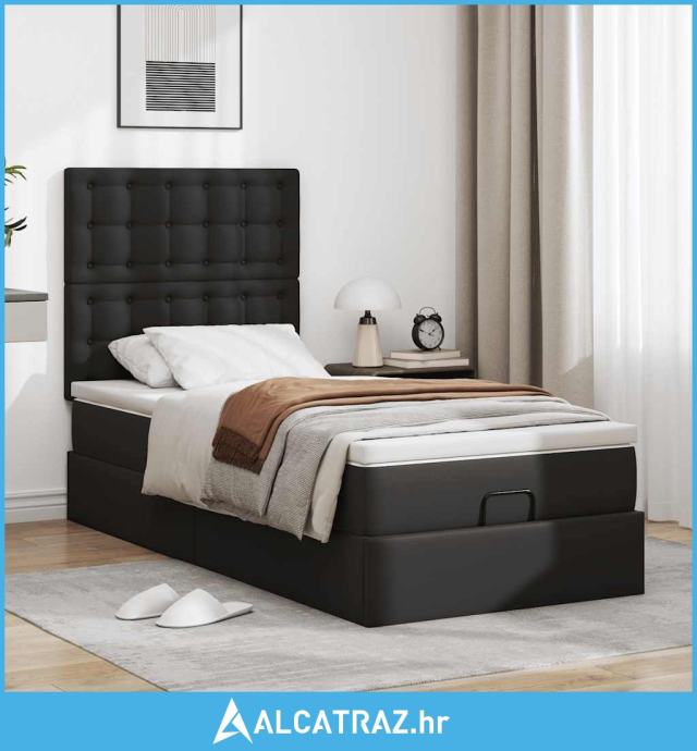 Otomanski okvir kreveta s madracem crni 80x200cm umjetna koža - NOVO