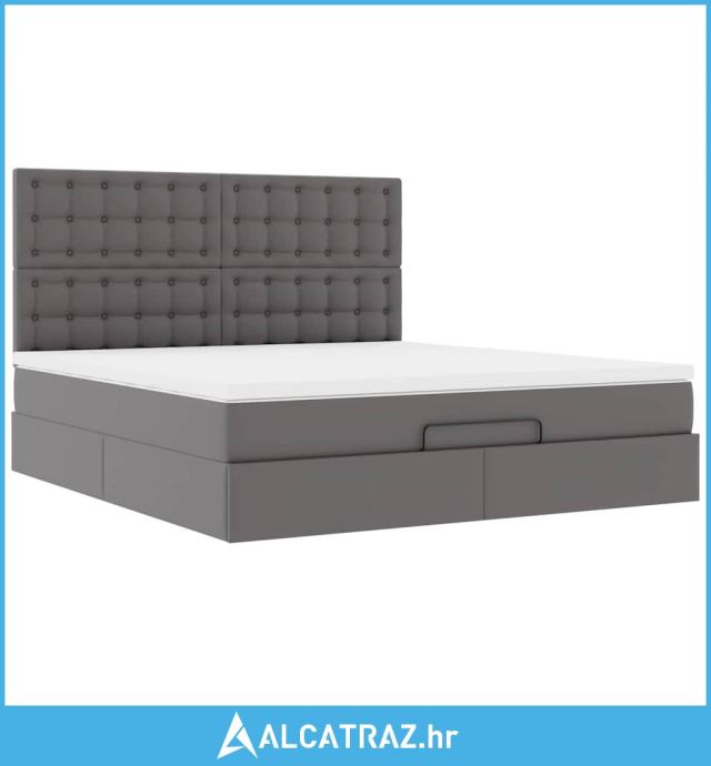 Otomanski okvir kreveta s madracem sivi 160x200cm umjetna koža - NOVO