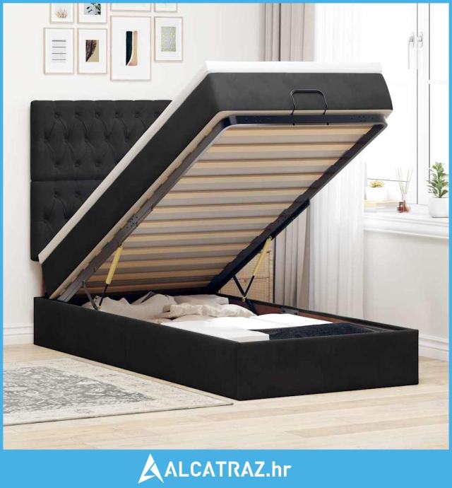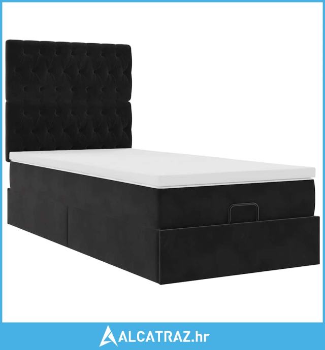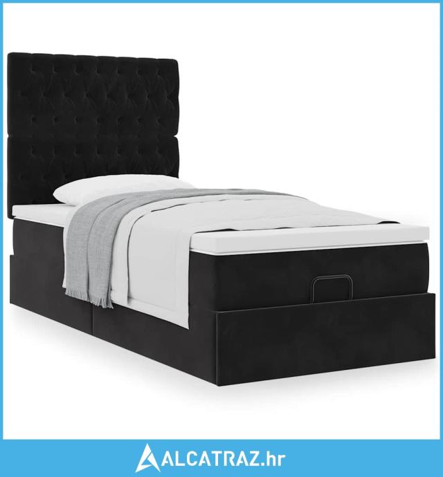 Otomanski okvir kreveta s madracima crni 90x190cm baršunasti - NOVO