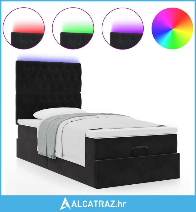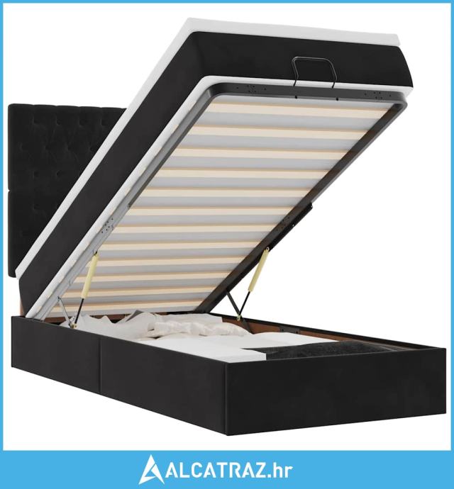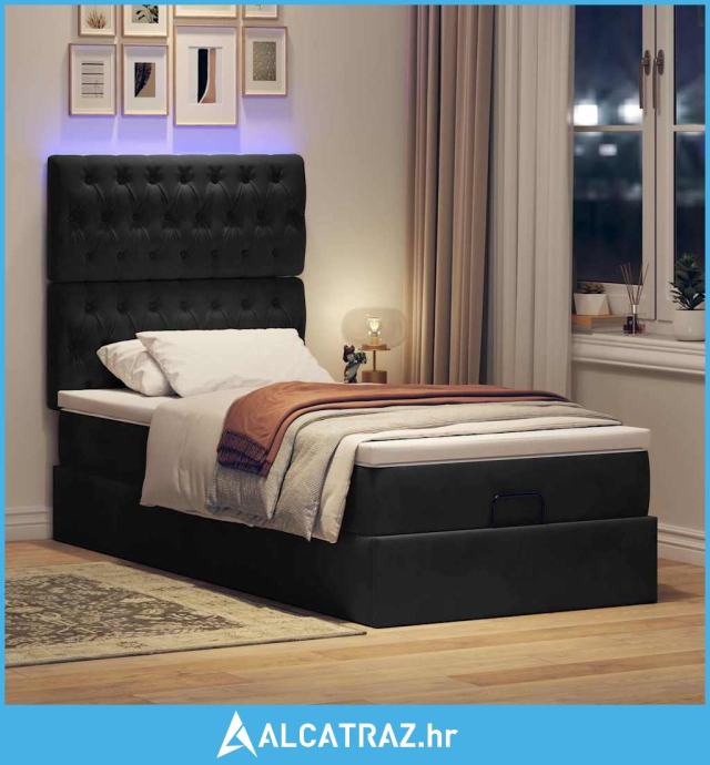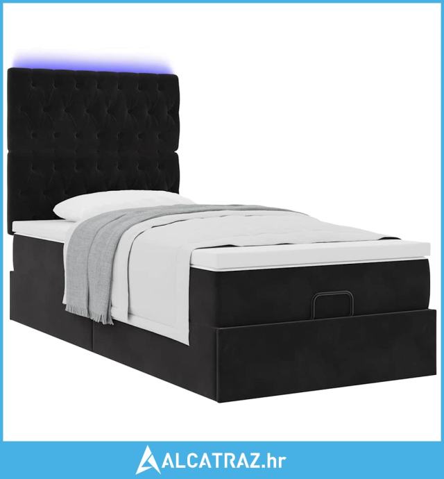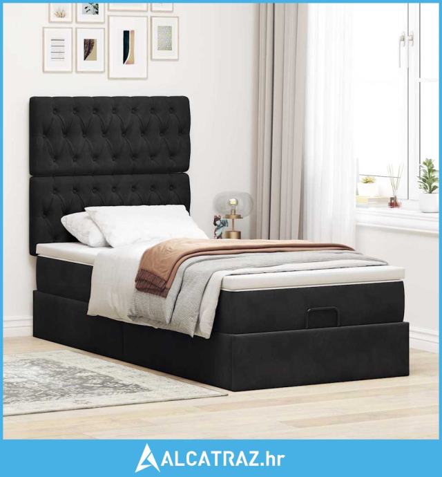 Otomanski okvir kreveta s madracima crni 90x200cm baršunasti - NOVO