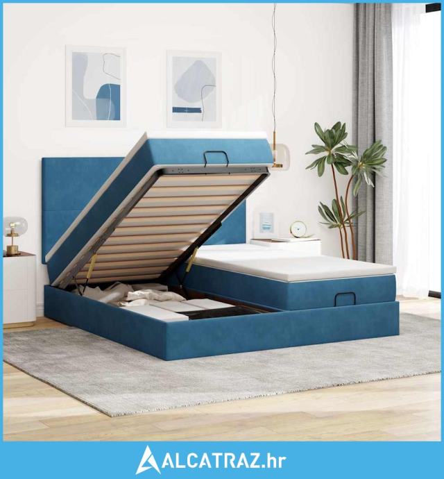 Otomanski okvir kreveta s madracima plavi 180x200cm baršunasti - NOVO