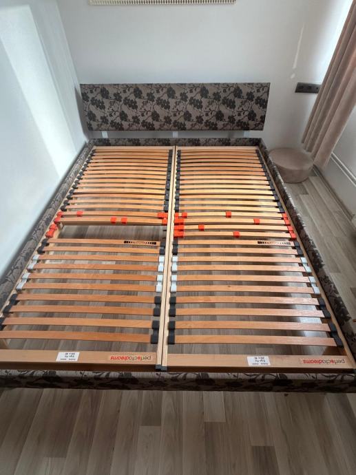 Izuzetno čvrst, kao nov, stabilan, bez škripanja, moderan bračni krevet sa dvije podnice.