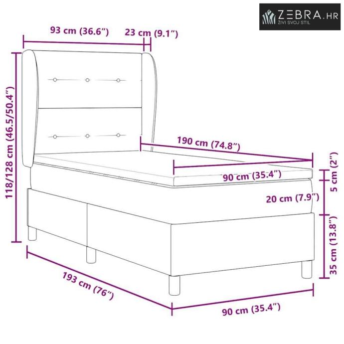 Kompatibilna veličina madraca: Kratki jednostruki (90 cm x 190