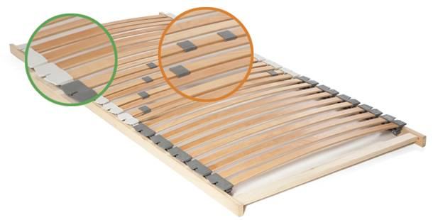 Posteljni ulošci ili podnice kreveta sastavljeni su od poprečnih letvica sa gibljivim elastičnim hvatištima za dodatni ovjes, te regulatorima tvrdoće za lumbalni dio kralježnice