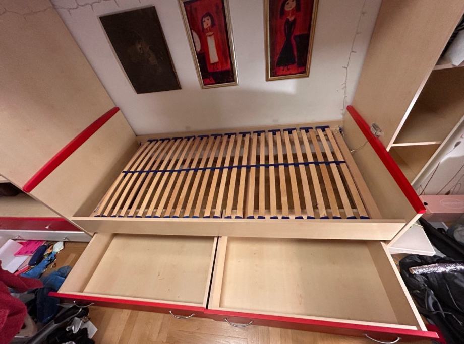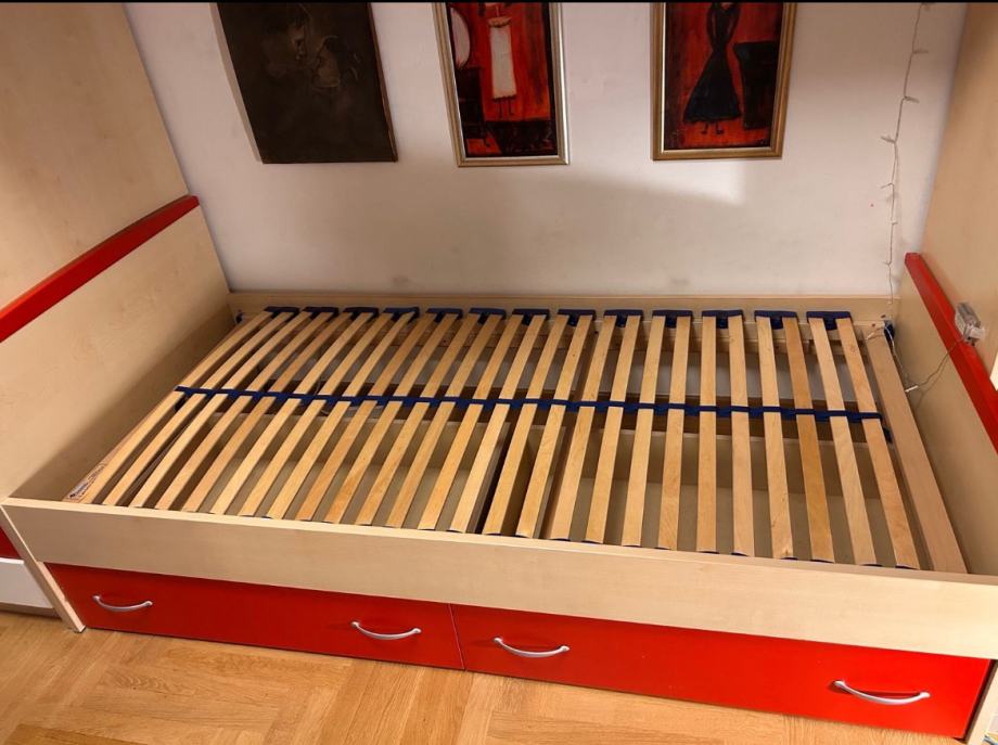 Krevet je dimenzija 90x200 s dvije ladice na razvlacenje te s podnicom.