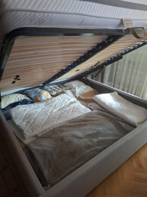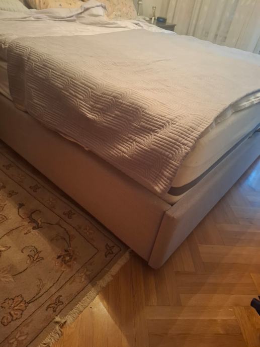 Bračni krevet Perfecta Dreams, dimenzije 180 * 200, s podnicom, bez madraca poklanjam, noviji je krevet, nigdje nije oštećen, materijal na uzglavlju imaju dvije ukrasne trake od skya (tu je oštećenje, to se da zamijeniti)