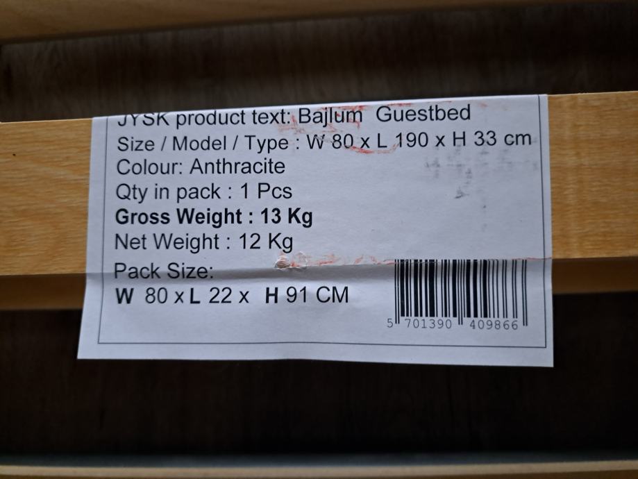 RAZLOG PRODAJE: nije nam više potreban kao pomoćni krevet za povremenu upotrebu jer smo kupili trosjed na razvlačenje. Priložena fotografija je posuđena iz JYSK-ove online trgovine. Naš je madrac plave boje.