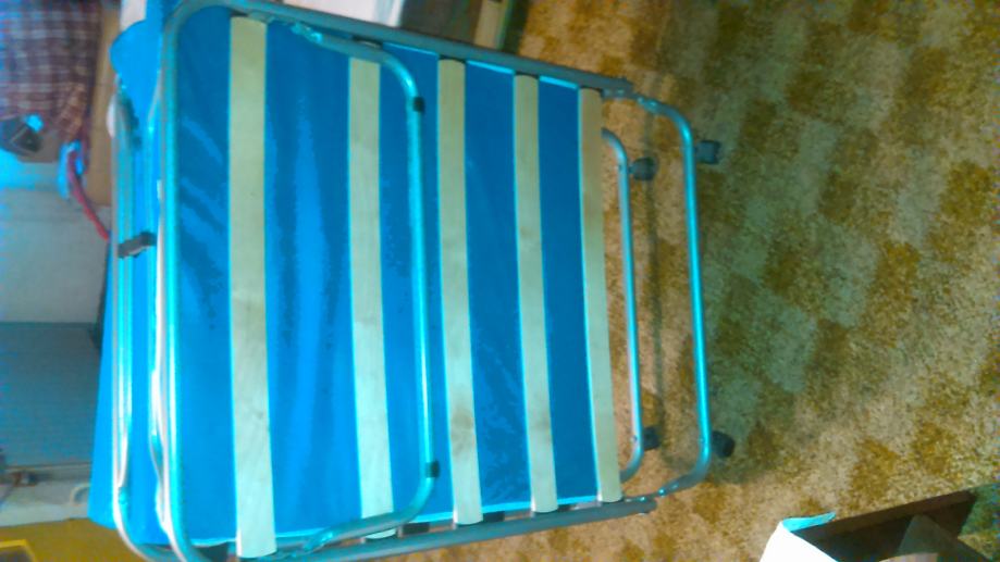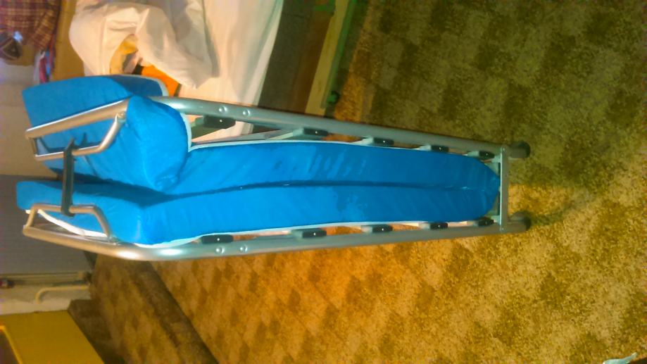Prodajem pomočni ležaj s madracem od spužve. Noge imaju kotačiće koji omogućuju jednostavno spremanje.