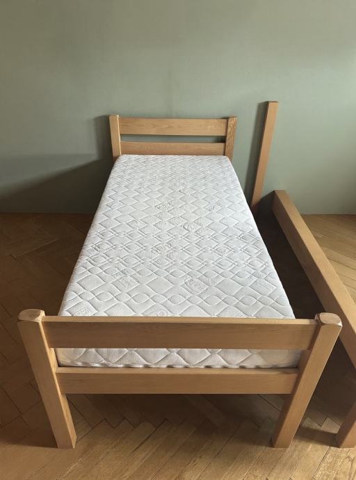 Dimenzije okvira 200 cm, madrac Wollbet 190x90 cm. Visina okvira je 49 cm, visina s madracem 60 cm, a visina gornjeg okvira gore i dolje je 75 cm. Cijena 170 eur, 200 s madracem. Cijena za dva kreveta + dva madraca 350eur.