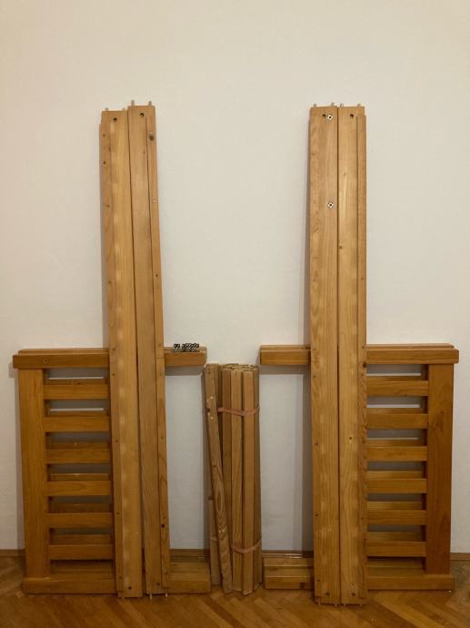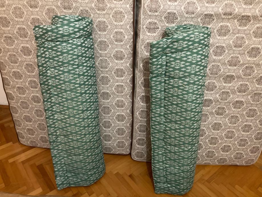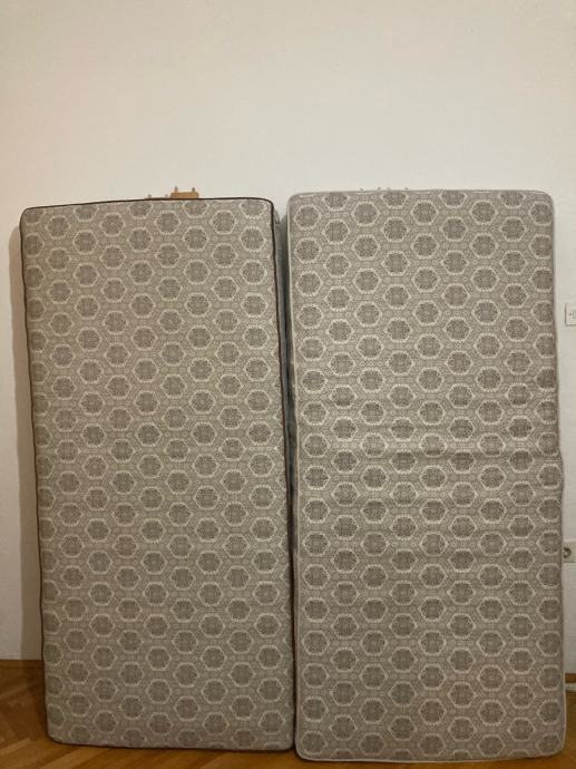 Madraci 190x90 u ok stanju, ima još života u njima. Pamucni nadmadraci. Fali jedna podnica, nova na atmowood s dostavom kosta 28E. Na drvenim okvirima sitni fiževi. Sve za 50E.