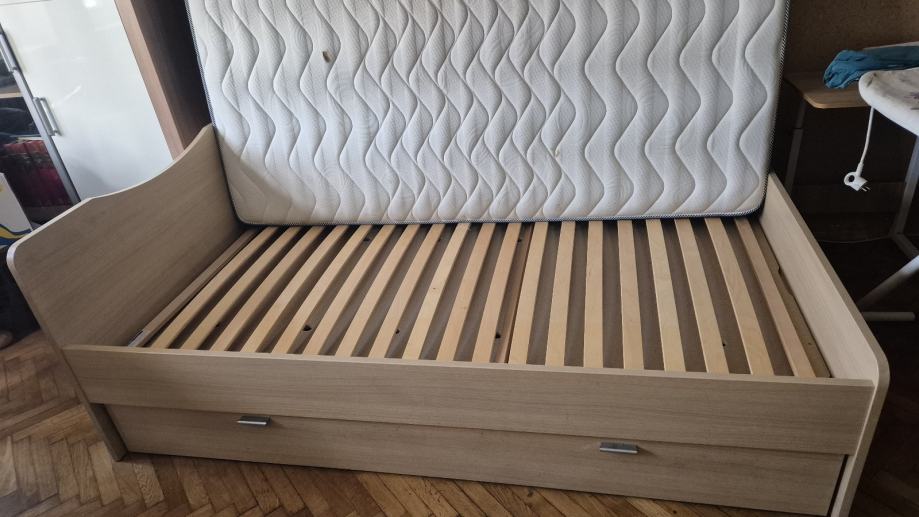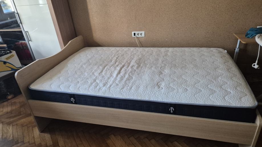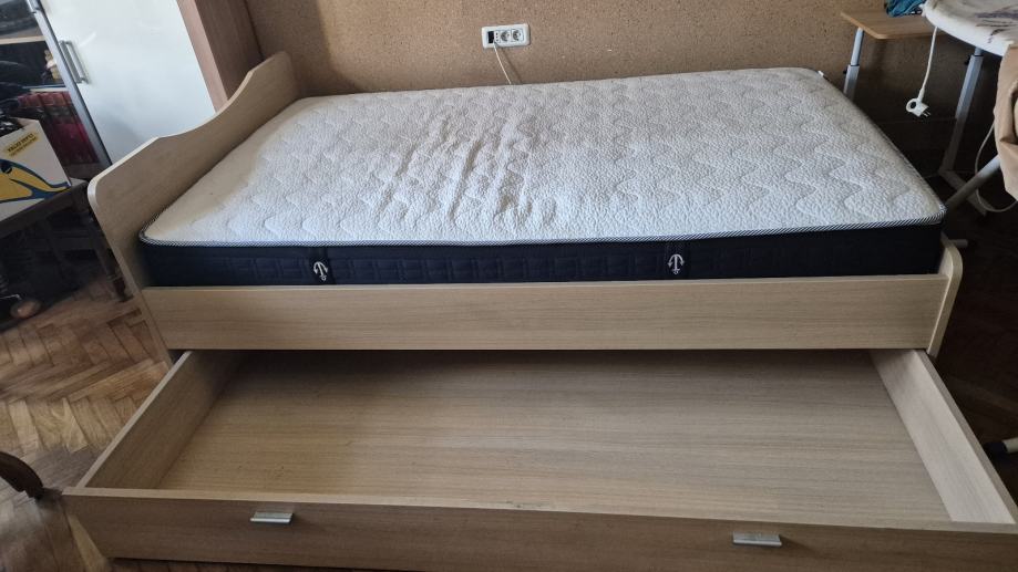 Prodajem krevet kao nov u kompletu s madracem od 5 zona udobnosti i podnicom. Dimenzije 120x200. Izvlačni zasebni dio za posteljinu ispod kreveta Potreban odvoz