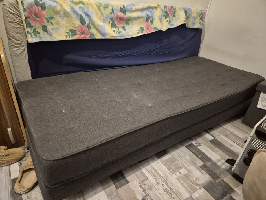 Prodajem krevet, gornji dio se moze poleci, cime se dobije dupli lezaj. Dimenzije su 190×75, nesto je nizi, 35 cm. Stabilan je, nista se ne klima, dobro ocuvan.