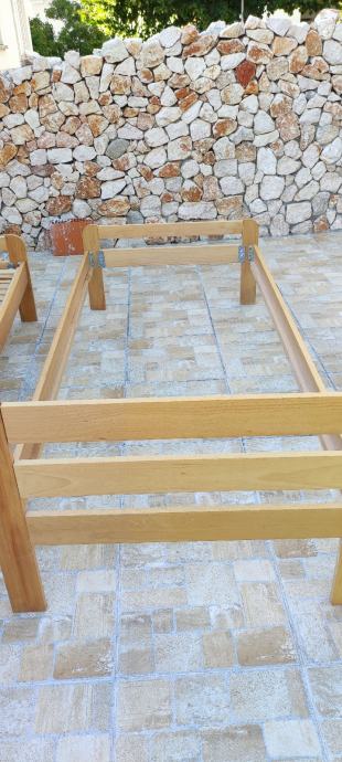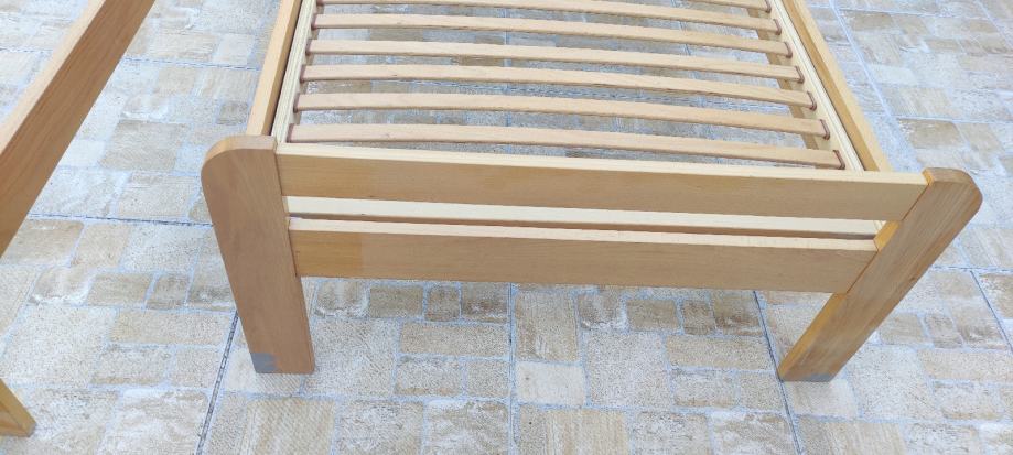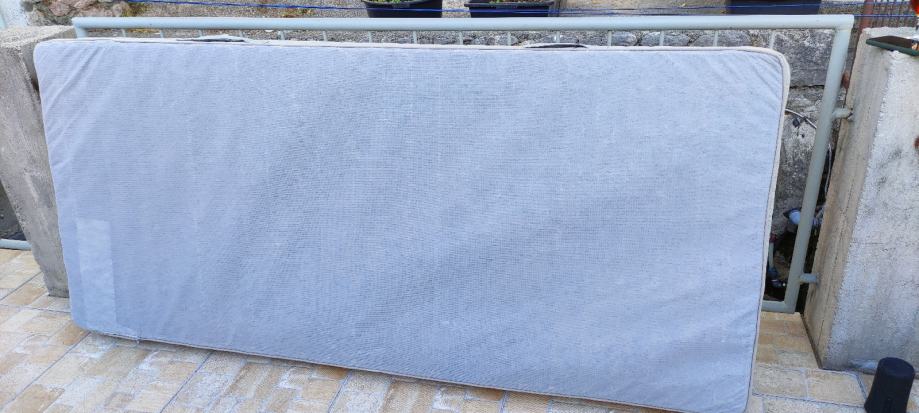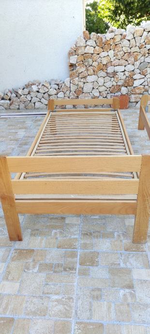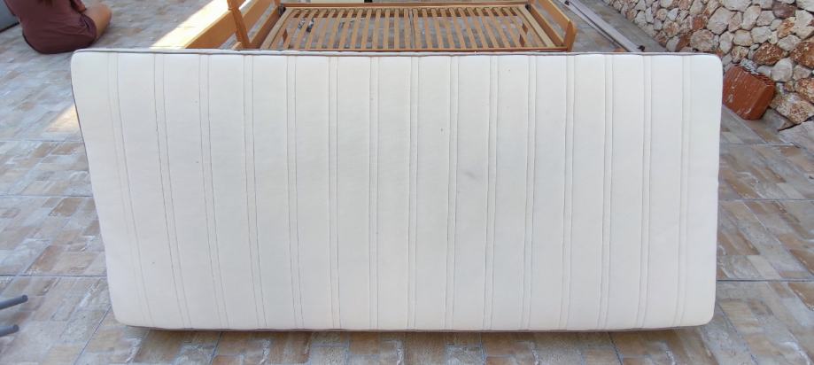 Prodajem rabljeni krevet kupljen u Lesnini, dimenzije 90x200. Nije potrgan ali je malo ogreban. Lako se može pošmirglati i prebojati. Uz krevet prodajem i opružni madrac, dimenzije 90x200cm kupljen u IKEI. Visina madraca je 18 cm. Madrac je kratko rabljen. Navlaka se skida i može se prati u perilici rublja na 40 stupnjeva. Može i u sušilicu. Link na noviju verziju madraca: