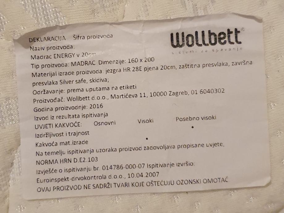 Krevet i madrac su kupljeni 2019.. Skidiva presvlaka je oprana i čista. Krevet je slabo korišten.