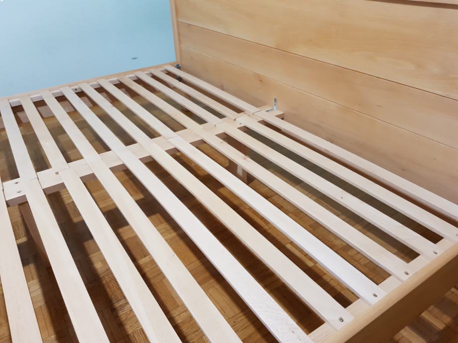 KREVET NA SLICI IMA SPUŠTENE STRANICE ISPOD RAZINE MADRACA,TAKO DA JE POGODAN ZA VRLO MALE PROSTORE, JER NE ZAUZIMA ŠIRINU VEĆU OD ŠIRINE SAMOG MADRACA, TAKOĐER NA UZGLAVLJU IMA DASKU ŠIRINE 10 CM KOJA SLUŽI KAO POLICA UMJESTO BOČNIH NOĆNIH ORMARIĆA