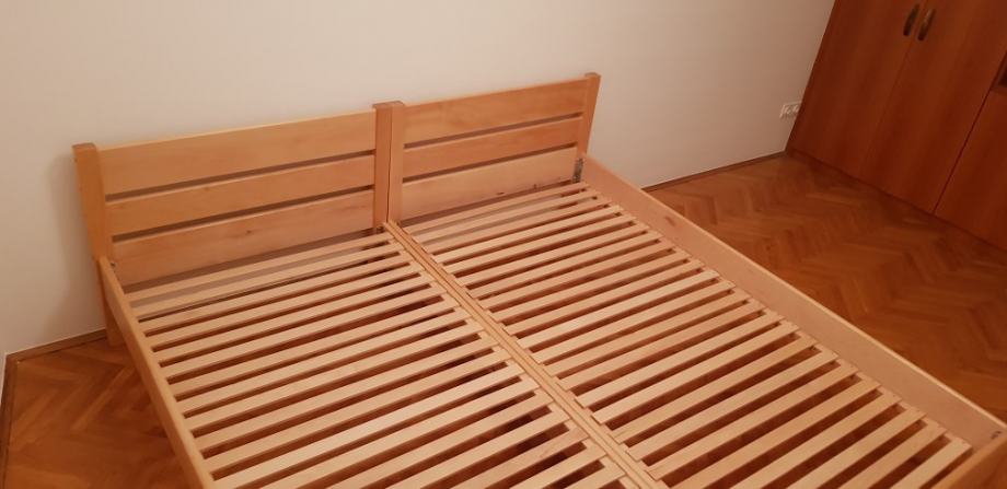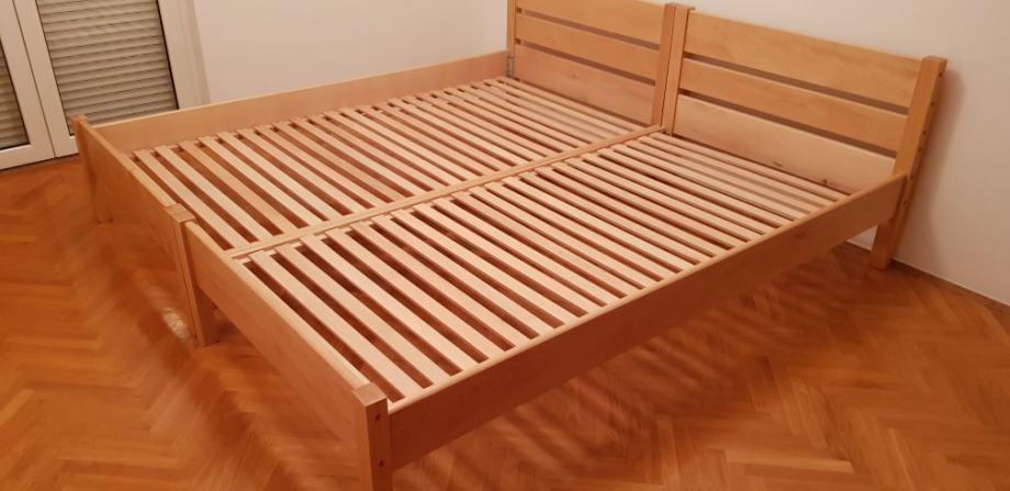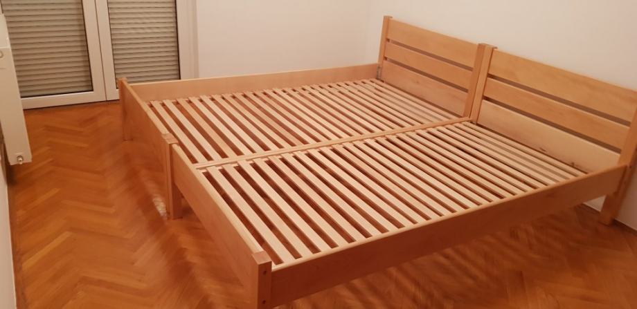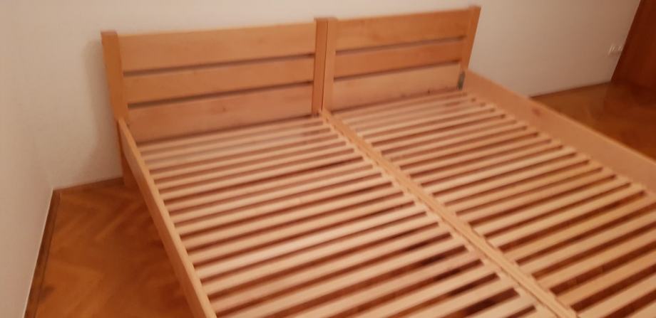 Kreveti od parene bukve izrađeni tako da se mogu spojiti u bračni krevet bez razmaka, a mogu se koristiti i kao samostalni kreveti za jednu osobu. Podnice su uključene u cijenu kreveta.