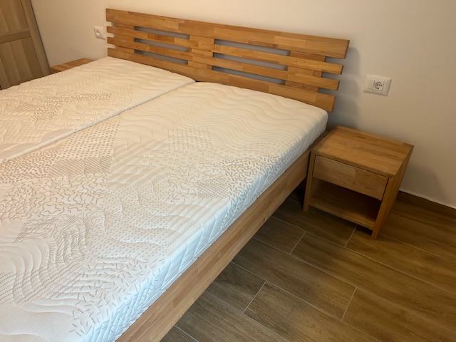 Krevet, puno drvo Futon krevet Elizabeth 180x200, 2x noćni ormarić Julija, puno drvo (40x40x33), 2x Nadana podnica living relax, prodajem radi prenamjene novo uređenog apartmana. Sve je praktičko potpuno novo. Madraci 2x madrac s džepičastim oprugama, Dana max. 160 KG
